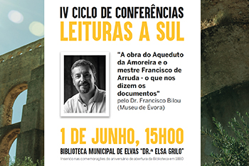A Biblioteca Municipal Municipal de Elvas Dra. Elsa Grilo acolhe este sábado, dia 1 de junho, a conferência “A obra do Aqueduto da Amoreira e o mestre Francisco de Arruda – o que nos dizem os documentos”, por Francisco Bilou, do Museu de Évora.A iniciativa está...