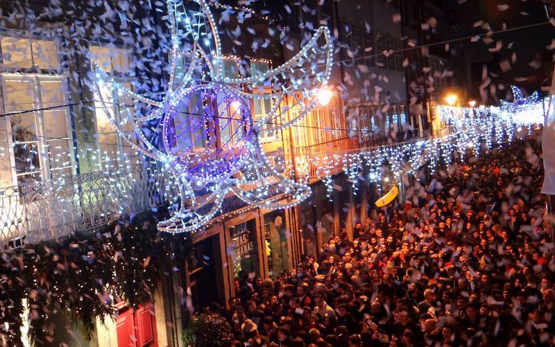 Nas tardes do dia 24 de dezembro a rua é inundada por milhares de pessoas para cumprir com o ritual, beber um cálice de moscatel de Setúbal e comer uma banana.