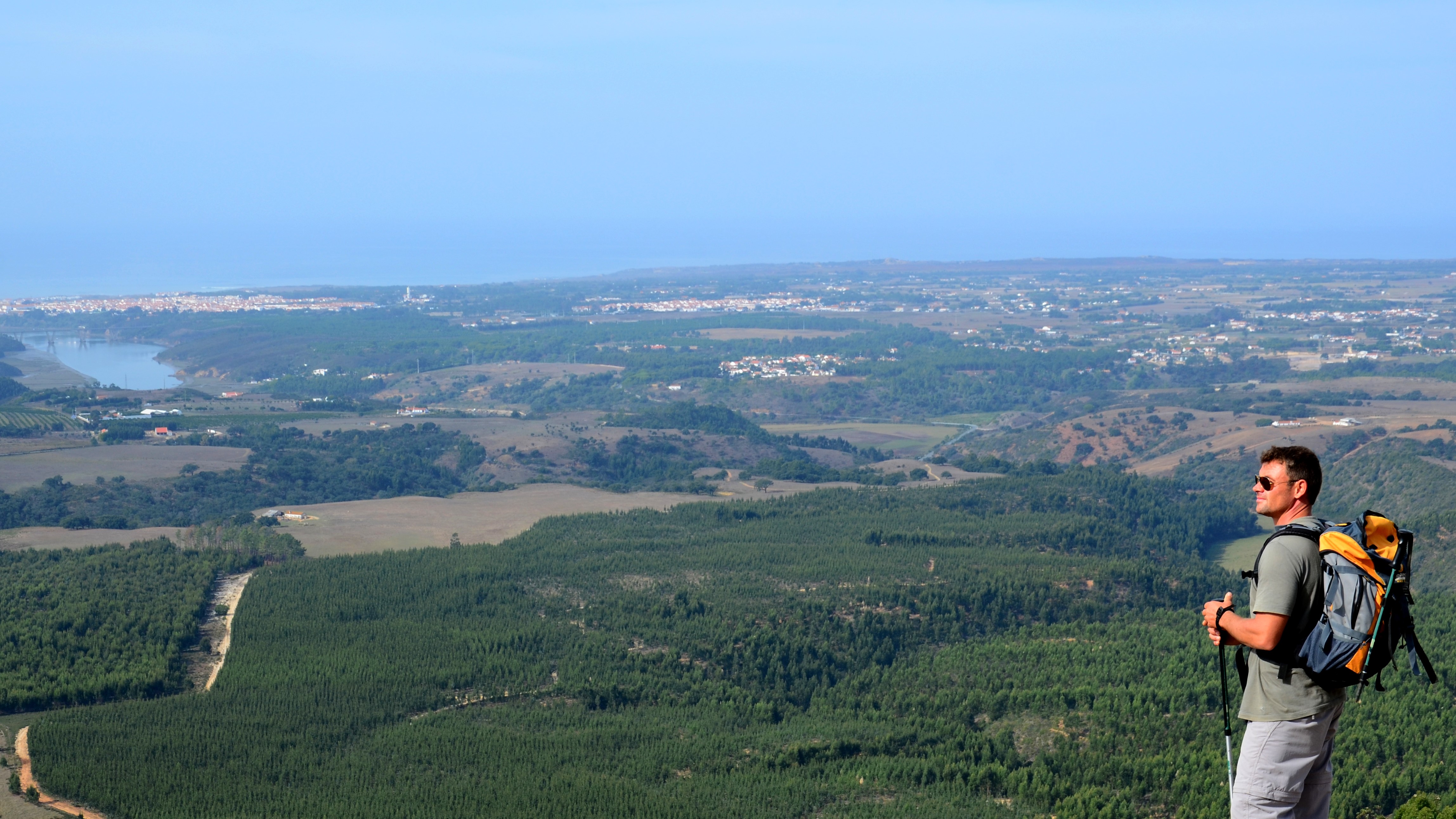 Saia pelo paredão da barragem da Tapada Grande e, no final, suba à direita. Siga pelo estradão, pelos campos de alfarrobeiras com as colinas encimadas por rochas quartzíticas, até ao Monte do Guiso, descanse e beba água. Volte ligeiramente atrás, passe ao lado de um...