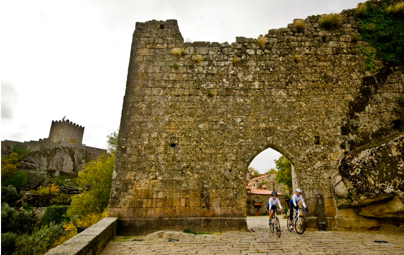 Saímos da Aldeia Histórica de Sortelha, do largo do Corro, em direção a este, com viragem à direita na M542. Seguimos em ligeira subida em busca do Sabugal, com passagem ao lado de Aldeia de Santo António. Na descida para o Sabugal, após a última curva, surge o seu castelo imponente pelo meio do arvoredo. Ao encontrar a N233, seguimos pela direita, em ligeira subida em direção a Santo Estevão. Estes quilómetros na N233 poderão apresentar alguma circulação de ligeiros e pesados. Alguns quilómetros à frente começamos a descer para Santo Estevão, seguida de Terreiro das Bruxas, onde seguimos pela direita, em direção a Casteleiro e Santo Amaro, onde mudamos de direção para norte, à direita. Mas à frente passamos em Vale da Escaleira e, após o cruzamento para Azinheira, abordamos a subida exigente para Sortelha, com cerca de 3km. Ao chegar à aldeia, entramos pela direita e continuamos a subir, contornando a muralha pelas suas ruas de empedrado, entrando na Aldeia Histórica pela porta oeste, descendo até ao largo do Corro pelas sus pitorescas ruas.