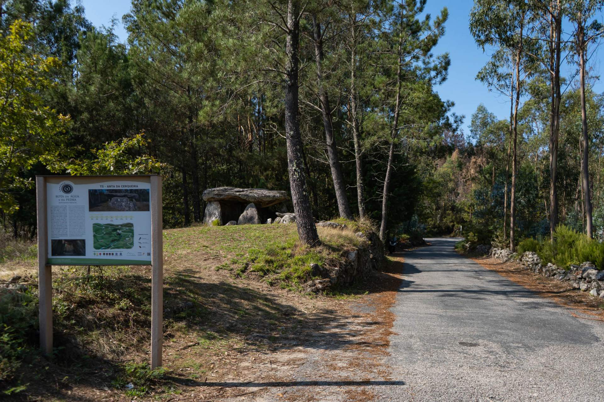 Sair de Monsaraz pela Porta da Vila, a norte, em direção à Ermida de São Bento. Contorne a Estalagem de Monsaraz rumo a Ferragudo, ao Convento da Orada e Cromeleque do Xerez. Seguir para norte pela Ponte Romana sobre a Ribeira da Pega. Seguir para Outeiro atravessar até à curva apertada da EN 1125. Seguir para noroeste, ver à direita a Serra da Barrada. Passando no Menir do Outeiro, ir até Barrada. Cruzar a estrada e descer ao Monte Saraz. Passar a Horta do Revoredo e olival milenar da Pega até ao cruzamento com Estrada Real. Faça um desvio para ver o Menir da Belhoa. Regresse à Estrada Real e vá até Telheiro ver a magnifica fonte, tome a ladeira histórica e suba até Monsaraz.