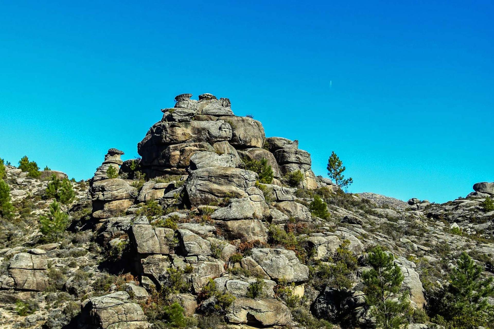 Este território foi profundamente transformado pelo ser humano, sobretudo a partir do Mesolítico, há mais de 8000 anos a.C.. As populações queimavam a floresta para promover o crescimento de ervas e favorecer os animais herbívoros, importante base da alimentação. Após o fogo, a vegetação menos densa facilitava também o acesso dos caçadores e o avistamento da caça. Estas populações usavam acampamentos temporários junto ao mar ou na serra, consoante a época do ano, para melhor aproveitarem a abundância de peixe e de marisco, caçarem ou recolherem frutos silvestres. Contudo, em locais seguros e de clima ameno, tinham os acampamentos de base, que seriam mais permanentes, uma vez que se encontram aí cemitérios e estruturas de armazenamento de alimentos.